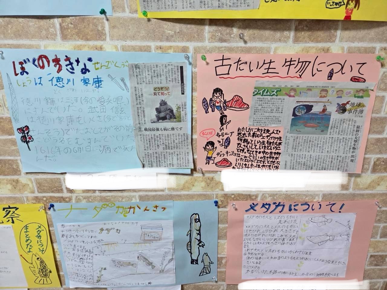 戦国武将や古代生物や勝負飯、また、この夏話題となったオバケ展や隕石&火球についてなど。 新聞記事を切り取り、ピックアップしたことで、いっそう見やすく、分かりやすく、周りの子ども達や保護者の方も目を引くまとめになりました(^^)