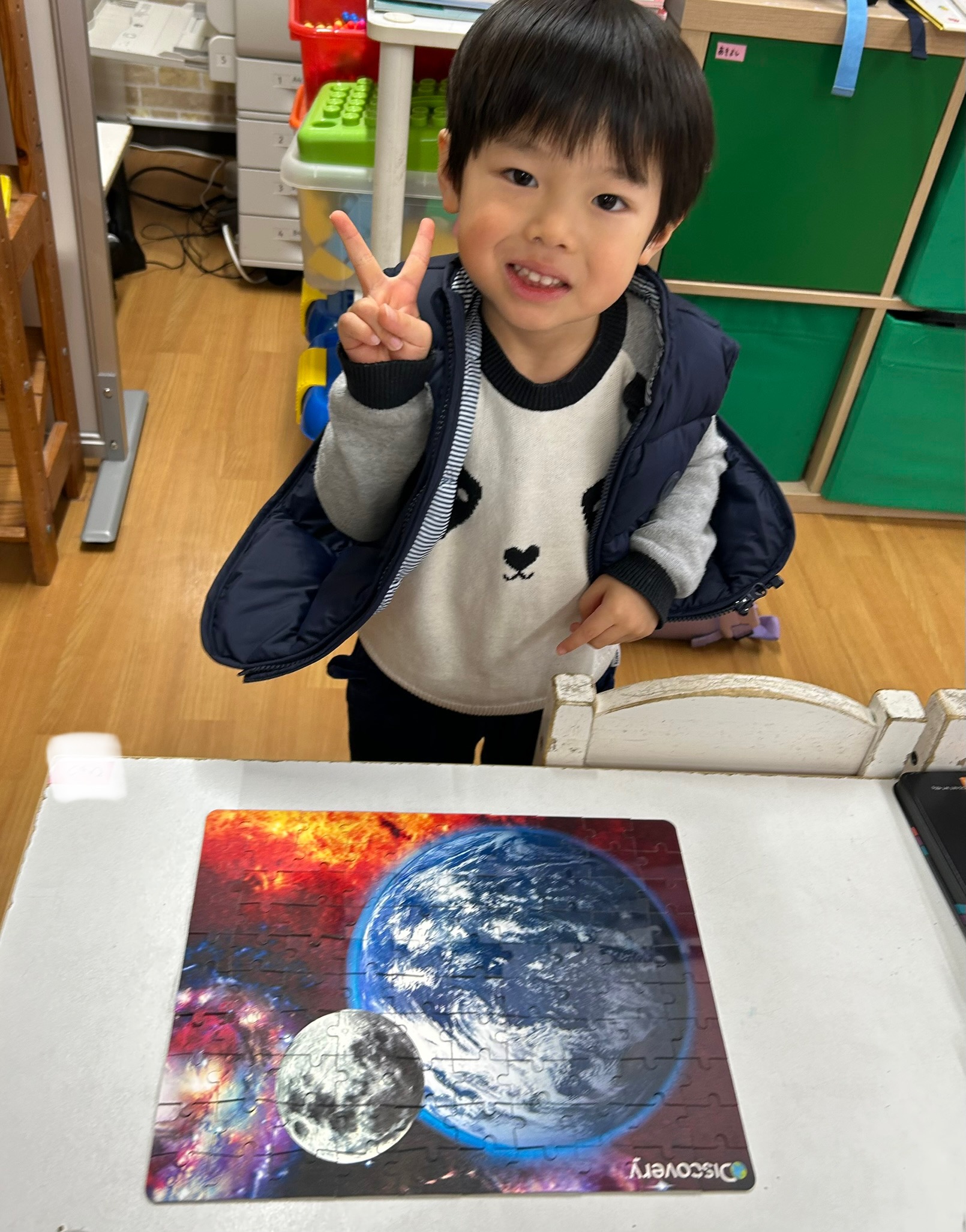 100以上のパーツをはめ込み、完成させました!パズルが大好きで毎日やっているので、完成させるスピードも早くなっています。
