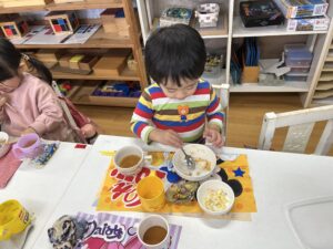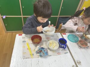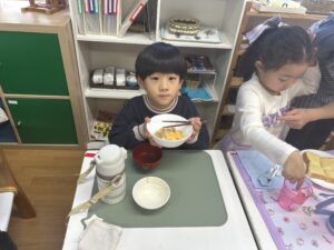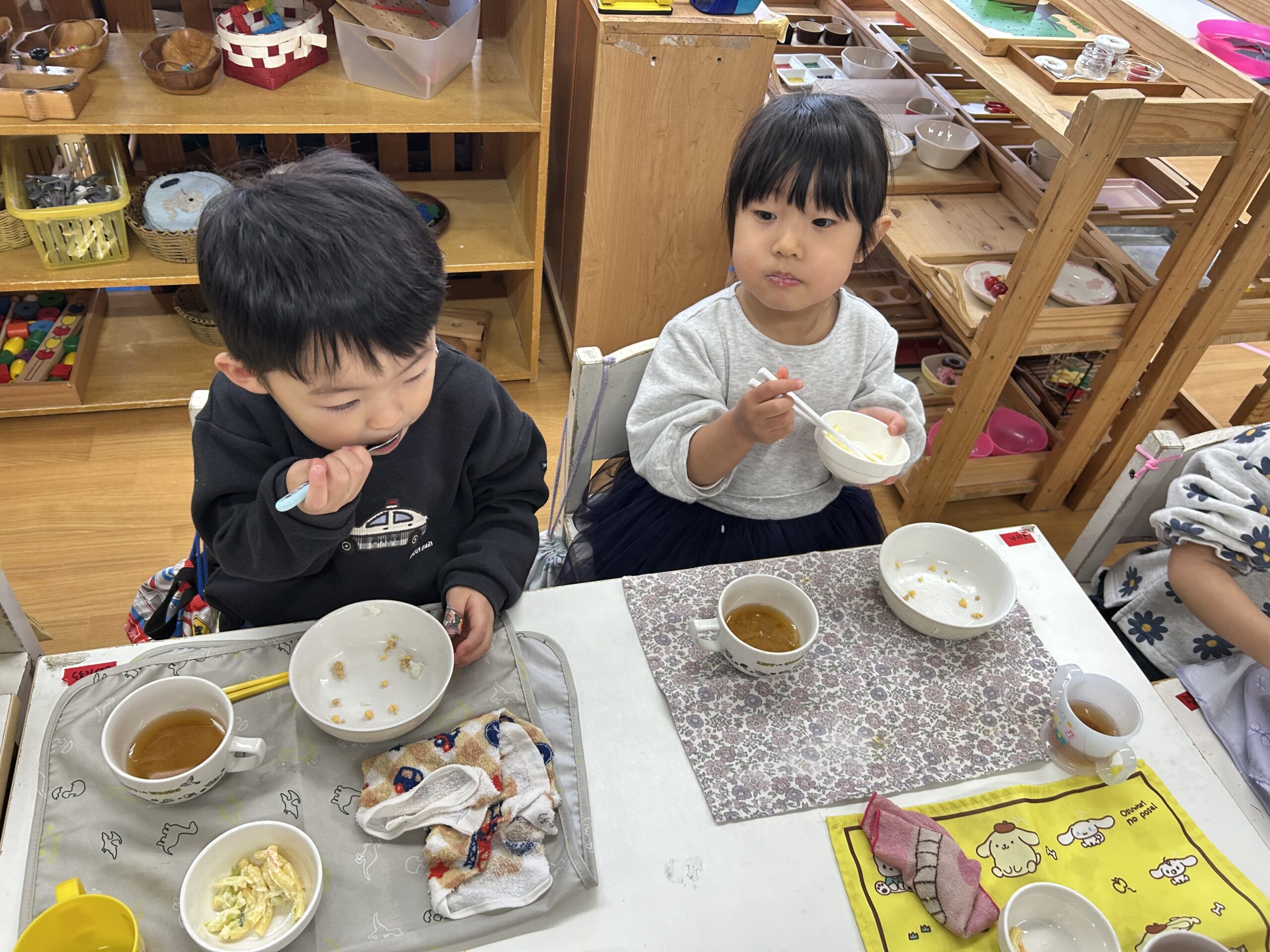 また、お皿の置き方やお箸🥢の持ち方、食べる時の姿勢など、食事のマナーも大切に伝えています。