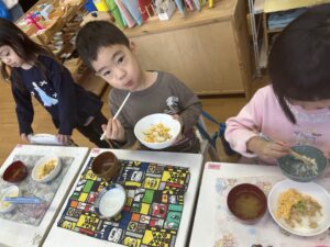 バランスよく食べると元気になる、ということが少しずつ身についてきたのか、最近は残さず何でも食べられる子が増えてきています。