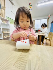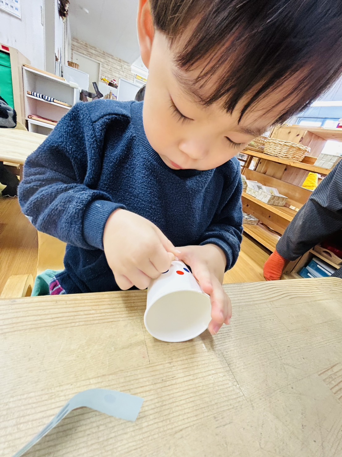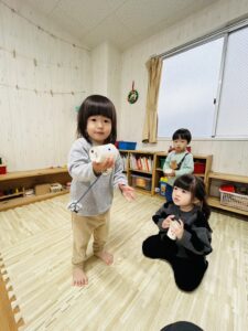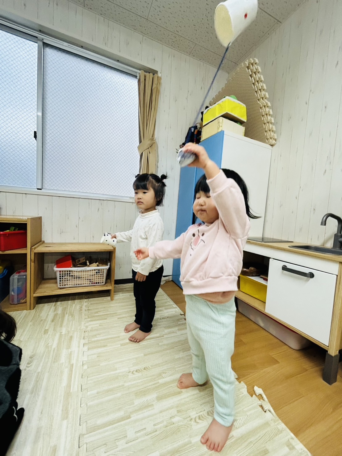 リトルサニークラスは、お正月🎍遊びのけん玉を作りました!