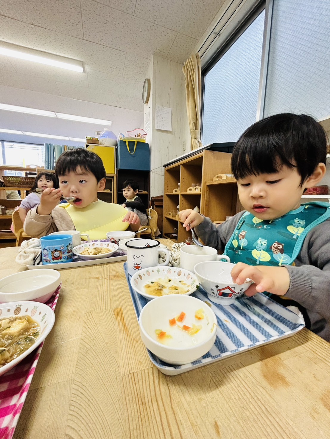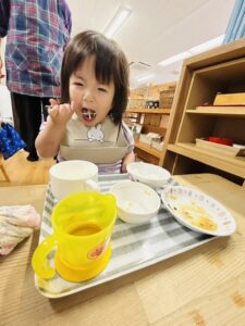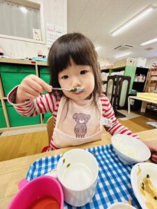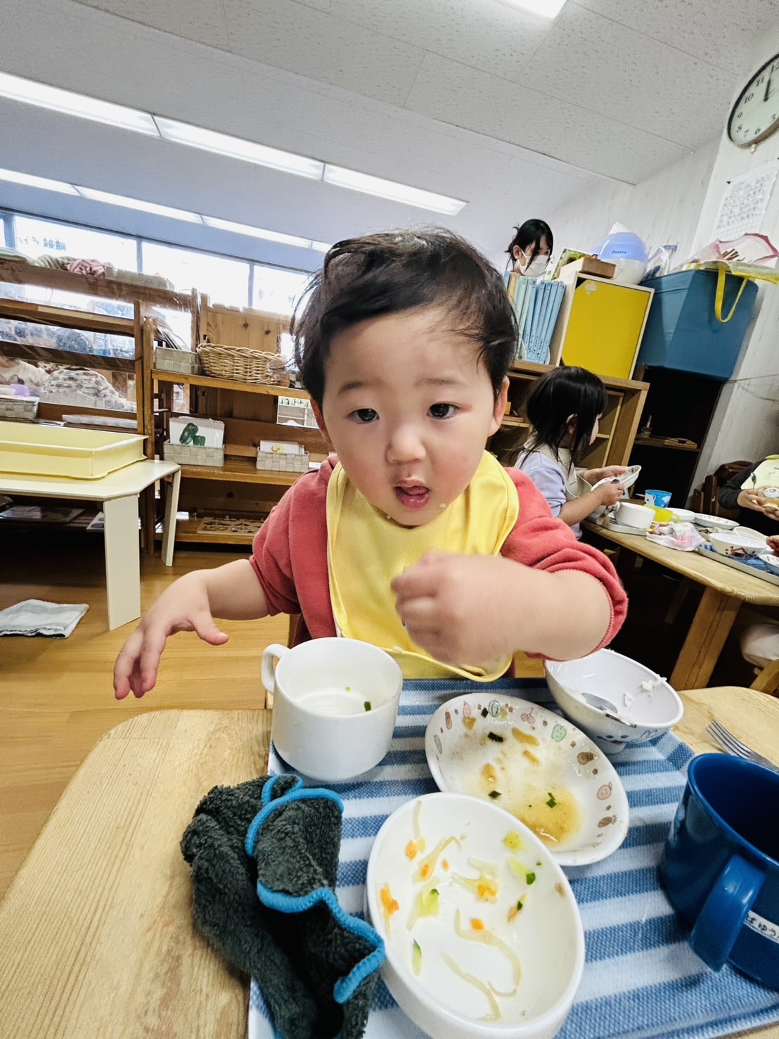 食べる量やスピードは一人ひとり違うからこそ、急かさず手を出しすぎず、小さな「できた!」を重ねながら、食べる(生きる)力と自信を育んでいます☺️