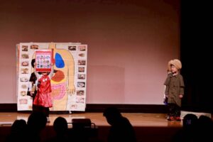 スカイクラスは、毎日食べる食べ物の働きやバランスについて、これまで学んできたことを言語劇で発表しました。